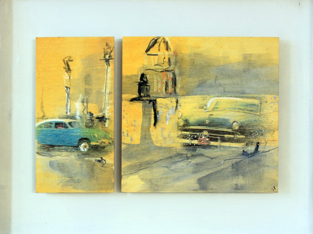 unzeitgemäß, Mischtechnik auf Sperrholz, 55 x35 cm