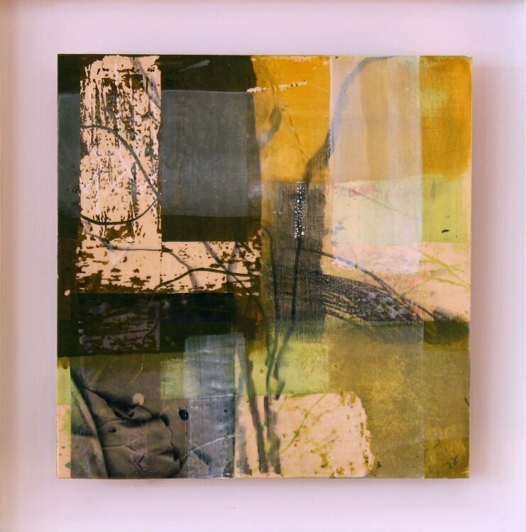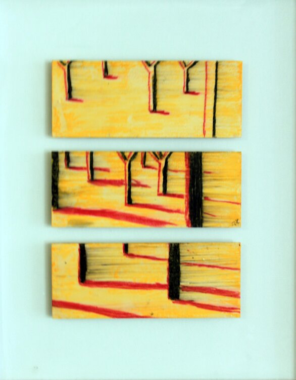 Die Schatten werden länger, Ölkreide/Wachs auf Sperrholz, 50 x 50 cm