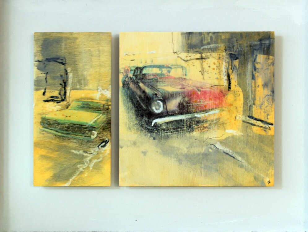unzeitgemäß, Mischtechnik auf Sperrholz, 55 x35 cm