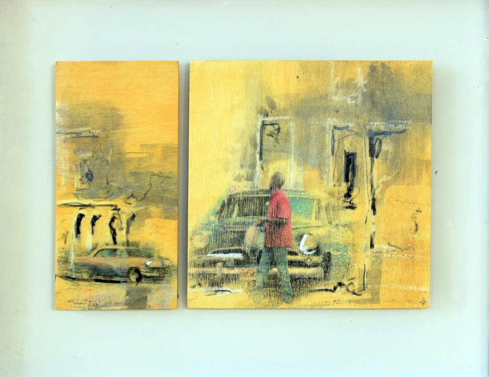 stehen geblieben, Mischtechnikg auf Sperrholz, 55 x 35 cm
